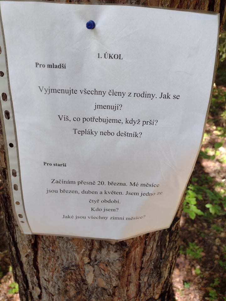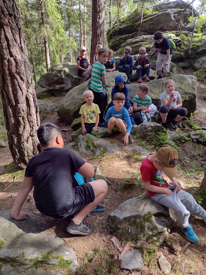 Dětem jsme spolu s odborníkem chtěli připravit oslavu jejich dne a to výletem do přírody, plněním úkolů a za odměnu nalezením pokladu. Sešli jsme se už den předem a vymýšleli jsme plán cesty ze Čkyně až do Záhoříčka k Čertovu kameni. Pro děti jsme připravili 10 zastaveních s různými úkoly, umístili je na stromy podél naší cesty a také jsme rozmístili putovní kamínky, které měly být zpestřením dlouhé cesty. Za cíl projektového dne jsme si dali: splnit všechny úkoly a najít poklad.