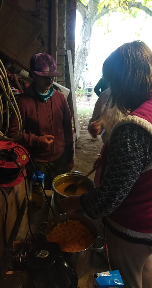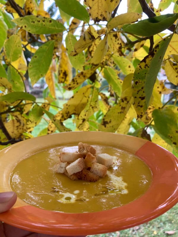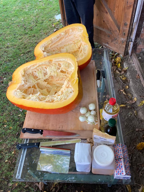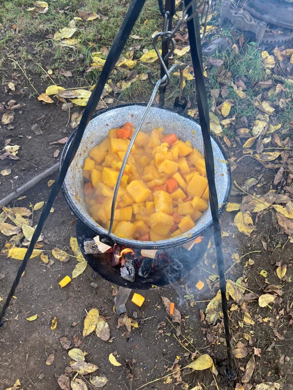 S dětmi jsme se sešli ráno na zahradě. Náš odborník z praxe – kuchař Kuba děti přivítal, vyprávěl jim o podzimních plodech a co všechno dobrého se z nich dá připravit, jaké zdravé látky dýně obsahuje a proč je správné dodržovat zásady zdravé výživy. Děti pomohly připravit ohýnek a poté se daly do zpracování dýně. Dlabaly, krájely, míchaly, ochutnávaly a pak si pochutnaly na dýňové polévce, dýňové buchtě, dýňovém džemu a kompotu. Při dýňové polévce jim kuchař Kuba vysvětlil zásady správného stolování a chování při jídle. Děti se vším pomáhaly, vyptávaly se a spolupracovaly mezi sebou. Když měly volnou chvilku, hrály na zahradě různé hry a také měly za povinnost vyplnit „pracovní sešit“, který měl ověřit, co si za celý den zapamatovaly.
