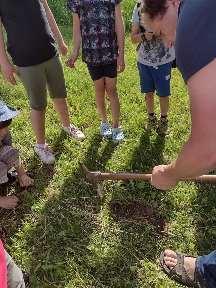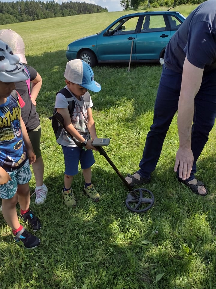 S odborníkem jsme se sešli dva dny před tímto projektovým dnem v naší klubovně. Nastínila jsem odborníkovi svoji představu o projektovém dni, aby si děti nejen vyzkoušely hledání mincí, ale aby se také dozvěděly něco zajímavého o historii obce – spojenou s historickými nálezy v okolí. Tento projektový den navazoval na naše klubové činnosti, když s dětmi objevujeme pamětihodnosti Čkyňska – např. právě židovský hřbitov, poblíž kterého se uskutečnil projektový den.