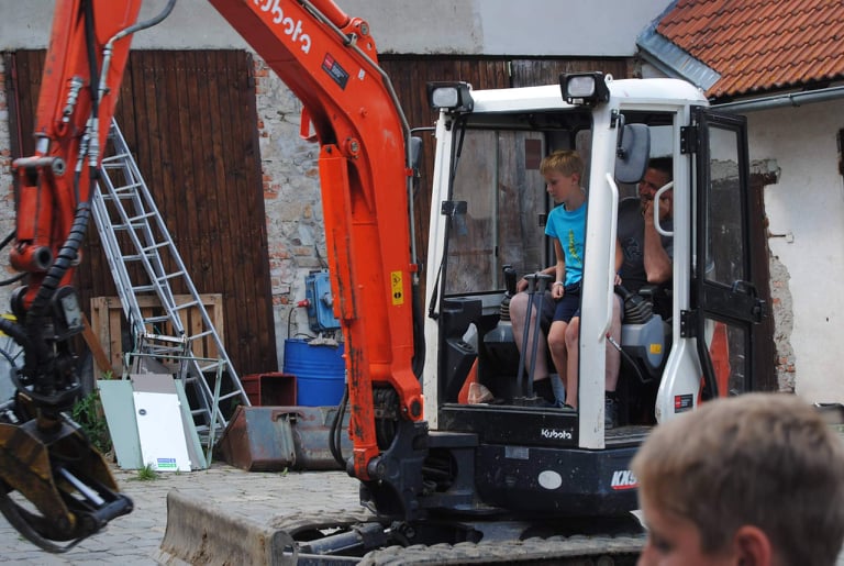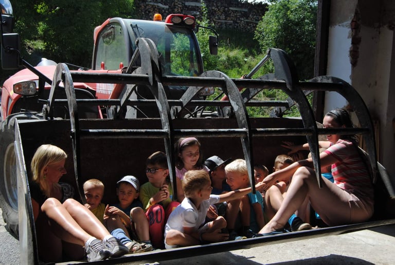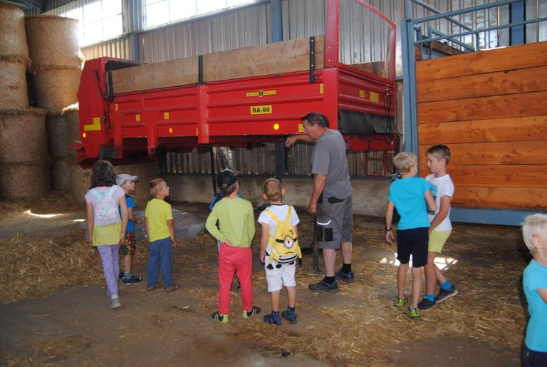 Děti se zapojily při každé činnosti. Nechaly se podrbat drbátkem na krávy, pohladily si krávy, jezdily s traktorem, vyzkoušely si práci s bagrem, nechaly se vyzvednout nakladačem, zkusily si kydání hnoje, krmily krávy.