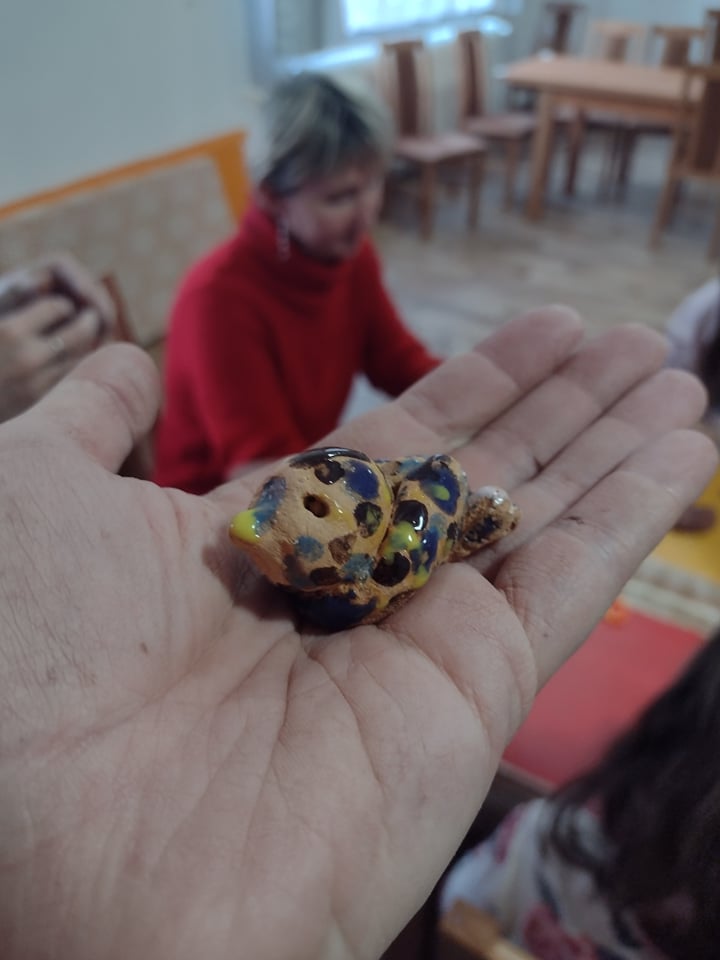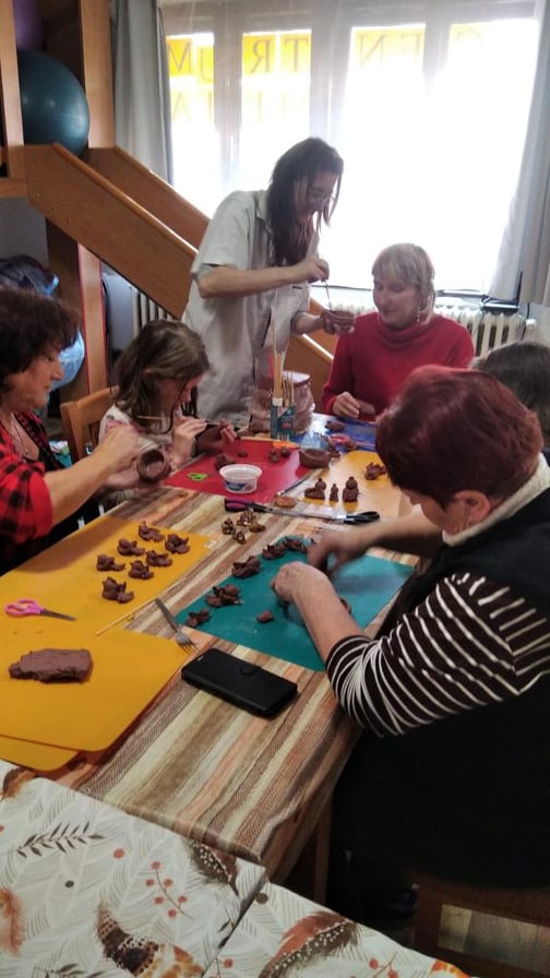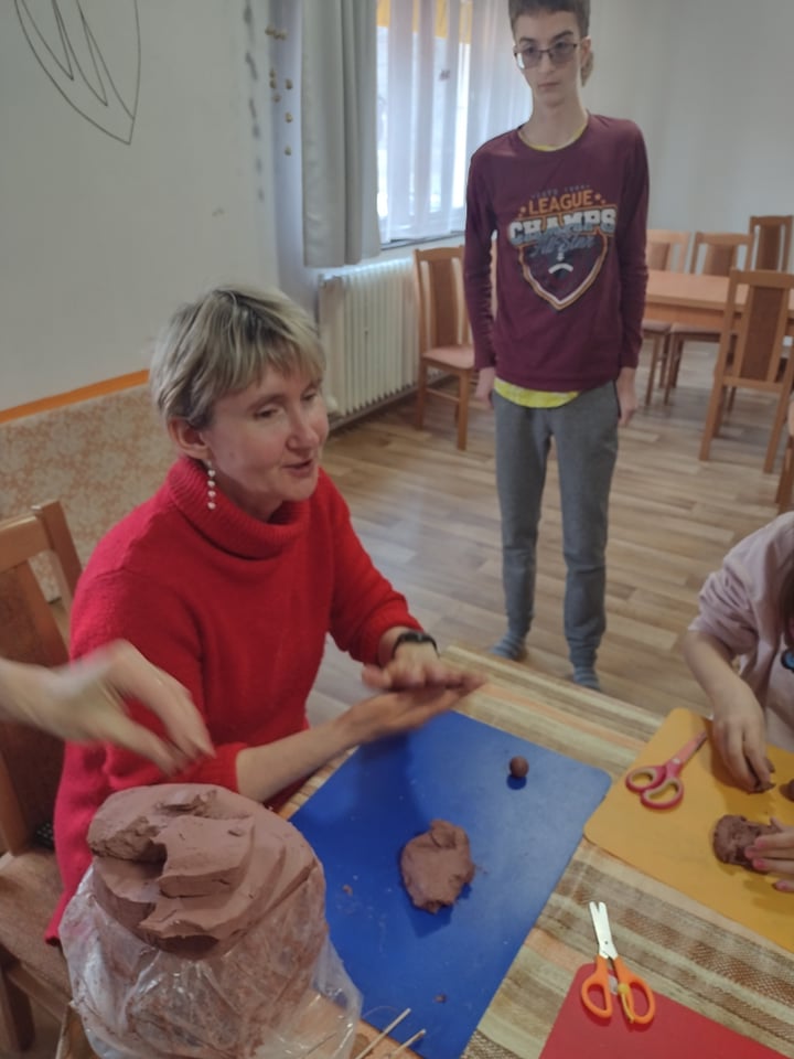 Děti zprvu nepoznaly, že je Lektorka nevidomá. Proto se moc divily, když jsem jim to řekla. Obdivovaly ji, jak dokáže „po slepu“ pracovat s hlínou a zároveň reagovat na jejich otázky. Také se moc zajímaly o její život, jak dokáže fungovat v dnešním světě. Lektorka s sebou měla i vodícího psa, tak dětem vyprávěla o svém kamarádovi, který ji provází na každém kroku.