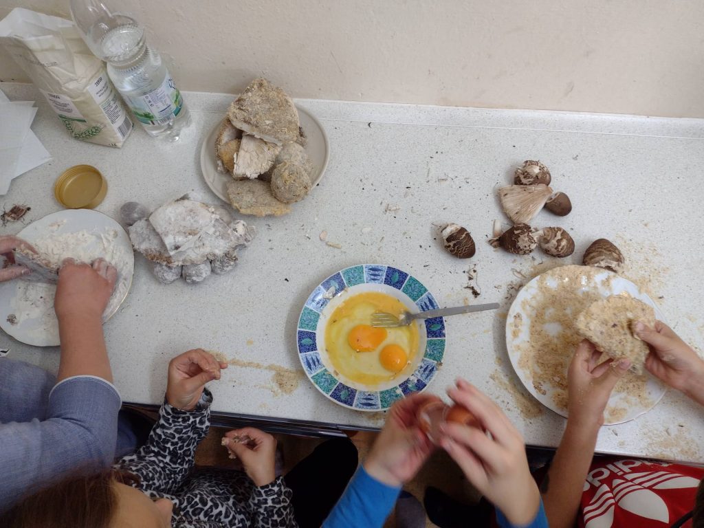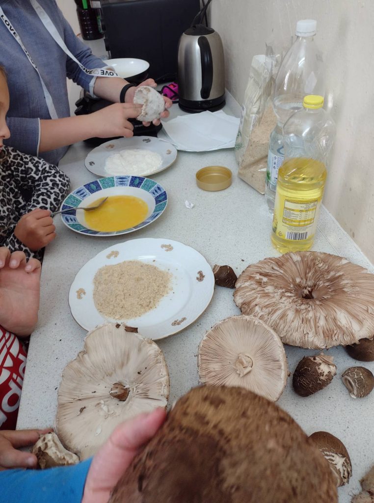 Děti si prohlédly houby a snažily se je opět určit. Měly to už jednodušší, protože v košíčku už byly jen jedlé houby. Poté měly za úkol tyto houby očistit a připravit k dalšímu použití. Na samotném vaření se děti také z velké části podílely samy.